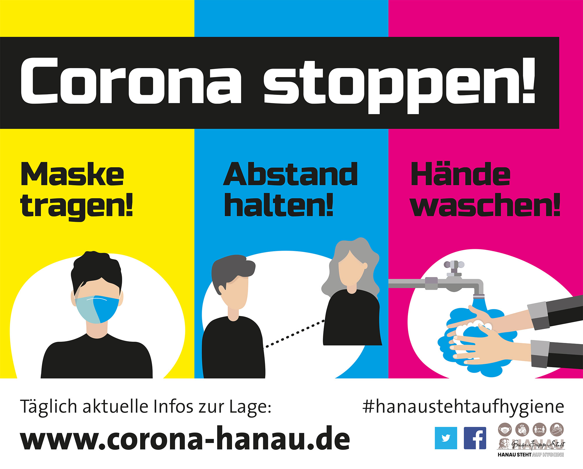 corona@hanau.de zu erreichen. Plakate und Broschüren (in sieben Sprachen) der Aktion „Corona Stoppen“ können beim Hygieneteambezogen werden