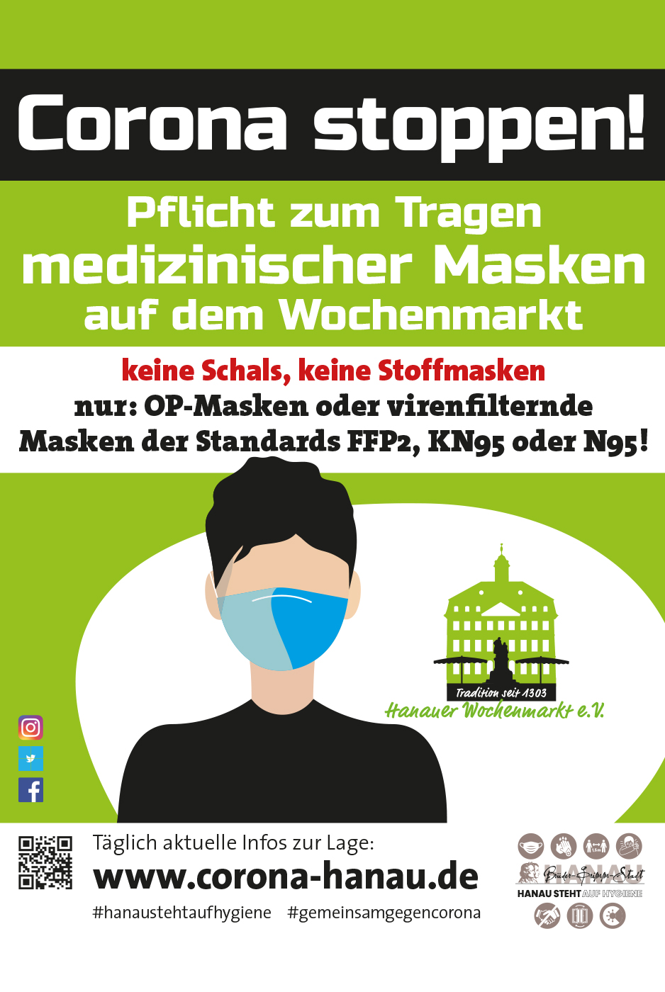 Die selbstgenähten Alltagsmasken oder eine einfache Mund-Nasen-Bedeckungen sind dann dort nicht mehr zugelassen – es ist die sichtbarste Erweiterung. Getroffen, so die Landesregierung, weil die empfohlenen Mindestabstände oft nicht eingehalten werden können. Die Stadt Hanau hilft an dieser Stelle ganz praktisch und stellt etwa den Hanau-Pass-Inhabern und -Inhaberinnen kostenfrei medizinische Masken zur Verfügung.